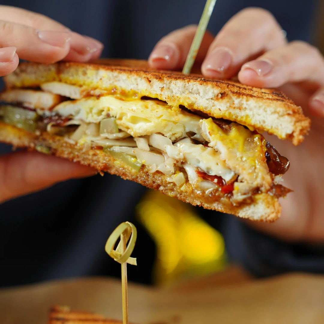 Tender chicken mixed with fresh veggies and layered with gooey melted cheese, tucked between slices of toasted bread. Savory, cheesy, and perfectly satisfying.