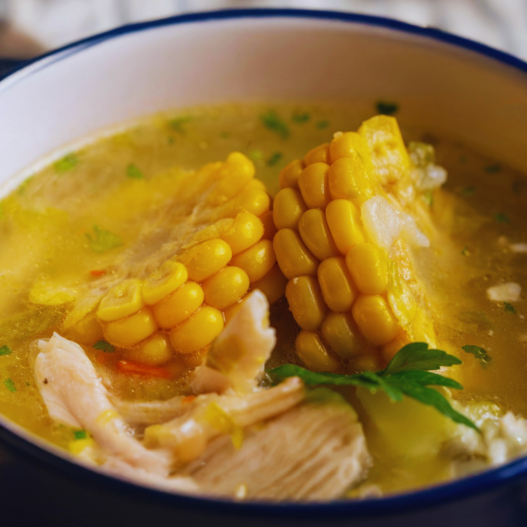 A creamy, comforting soup made with tender chicken and sweet corn, blended into a smooth, flavorful broth. Mildly sweet, hearty, and a perfect starter for any meal.