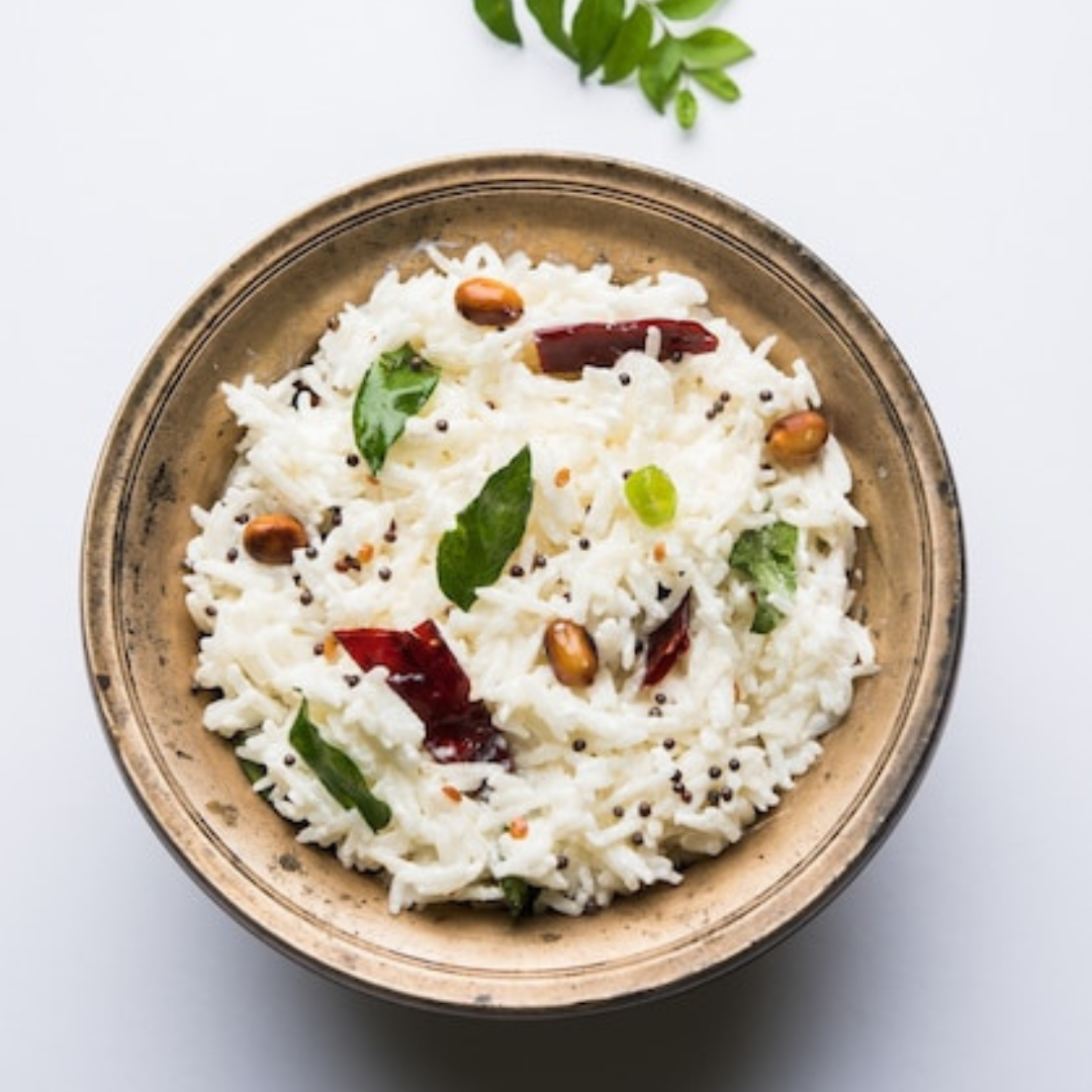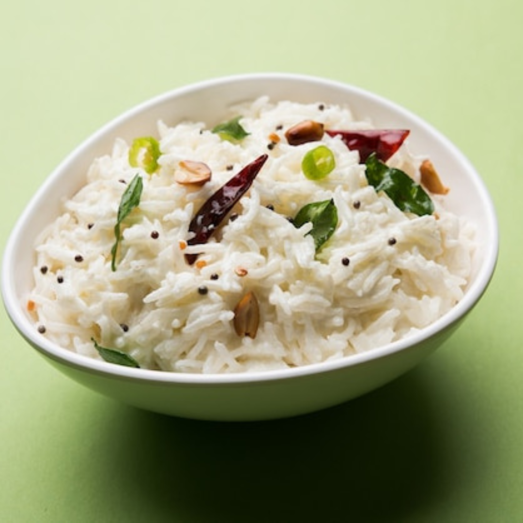A South Indian comfort classic-soft rice mixed with fresh curd and tempered with curry leaves, mustard seeds, and green chilies. Cool, refreshing, and soothing to the palate.