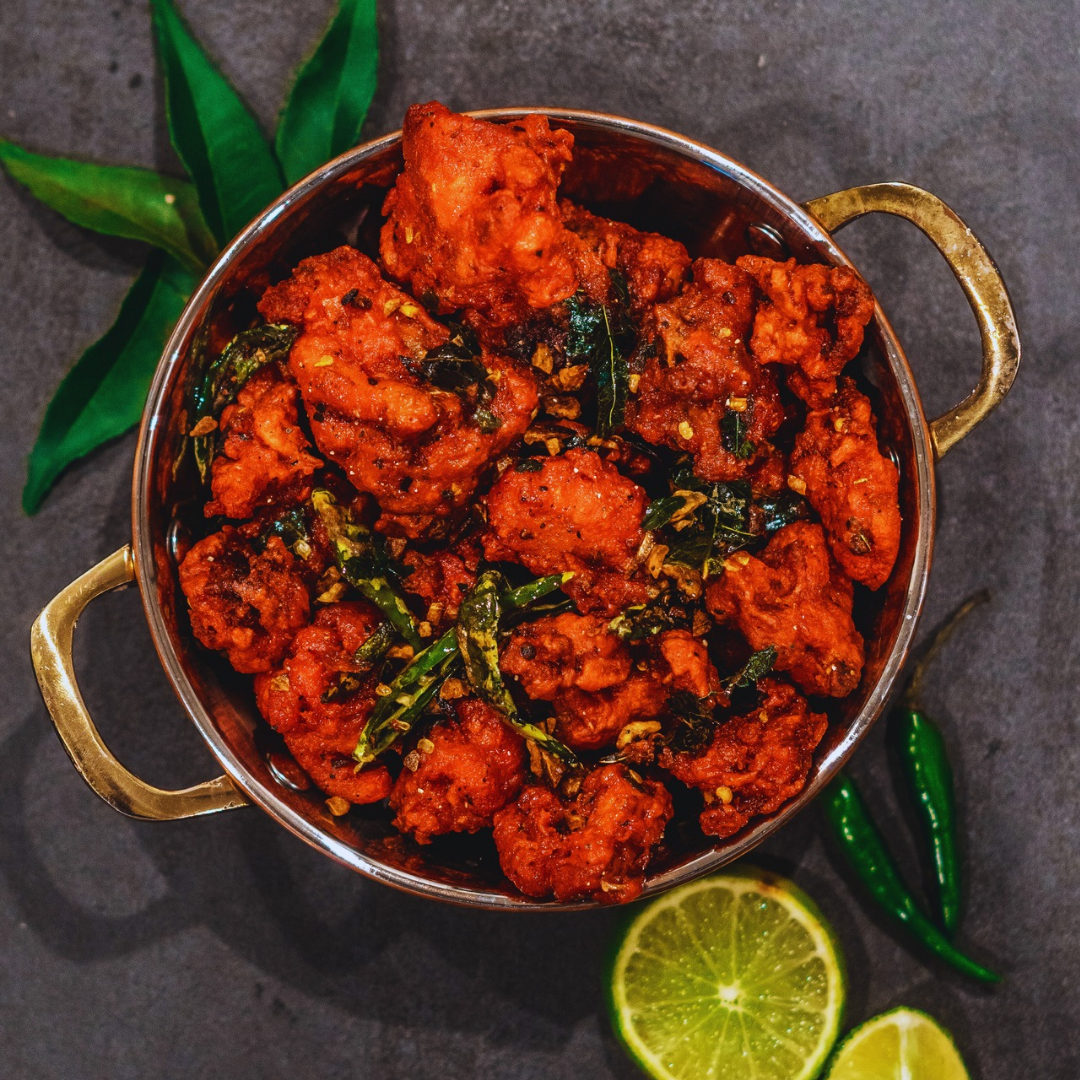 Tender chicken pieces cooked with fresh capsicum, onions, and tomatoes in a bold, aromatic kadai masala. Spicy, flavorful, and perfect with naan or roti for a hearty meal.