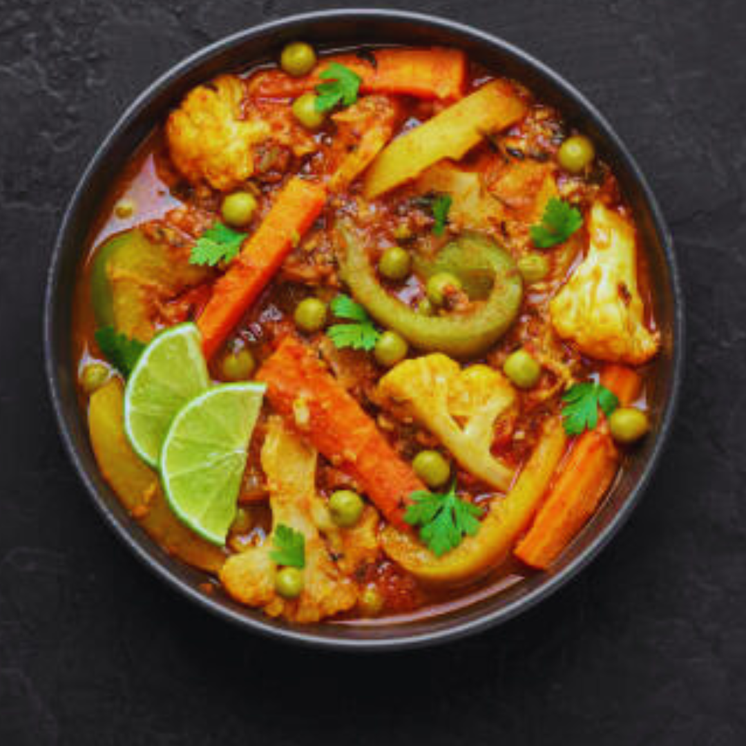 A rich and creamy curry made with a medley of fresh vegetables simmered in a mildly spiced, nut-based gravy. Flavorful, wholesome, and a perfect vegetarian delight.