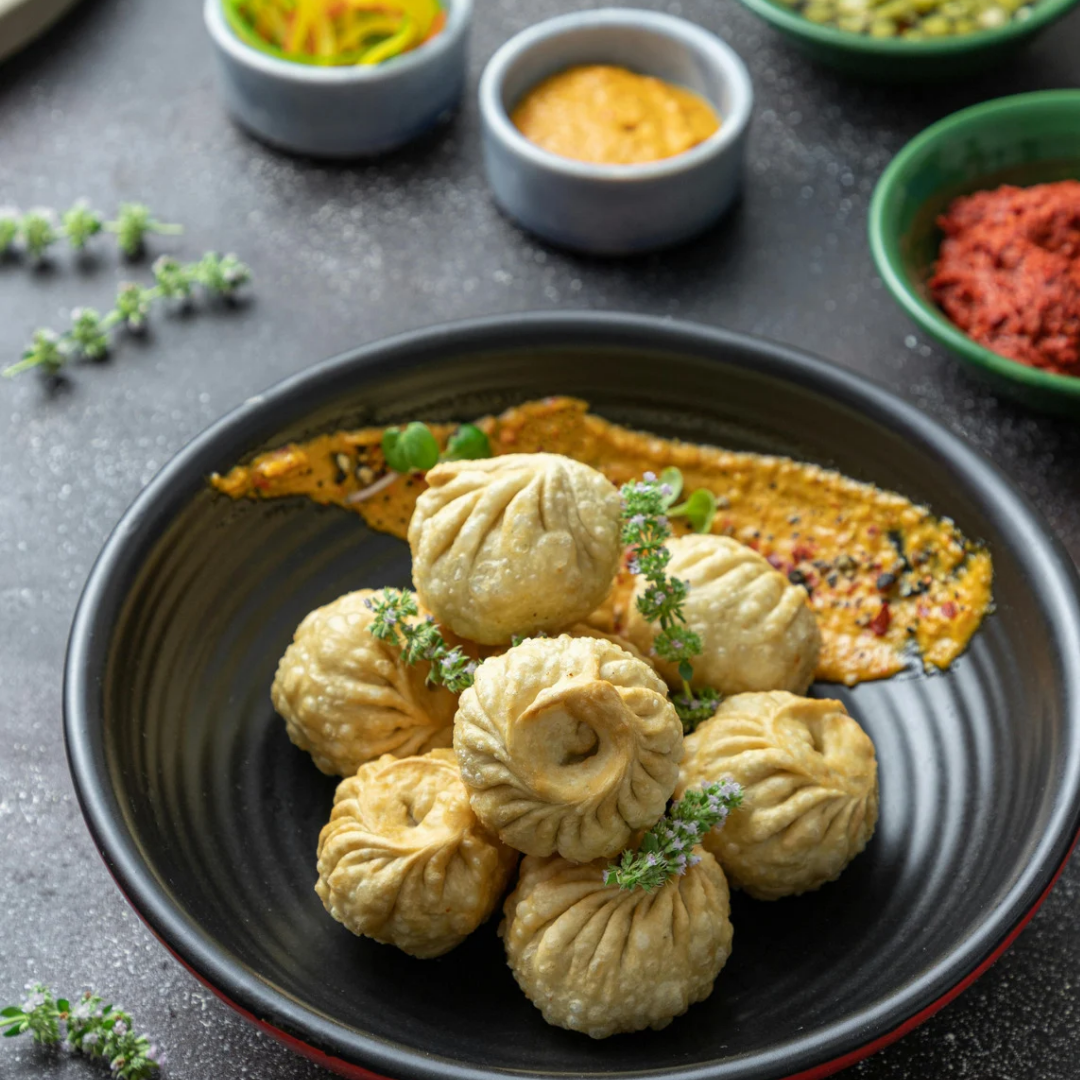 Crispy golden dumplings stuffed with a savory mix of fresh vegetables, fried to perfection. Served hot with a spicy chutney for a crunchy, flavorful treat.